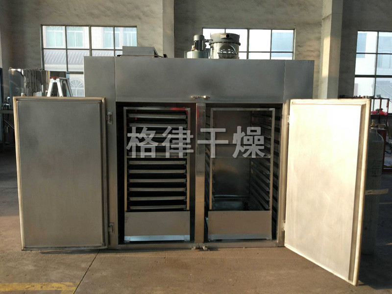 型号规格 | 每次干燥量(kg) | 风机功率(kw) | 耗用蒸气(kg/h) | 烘车(set) | 烘盘(只) | 宽×深×高(mm) | 上下温度(℃) |