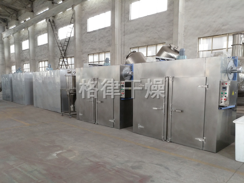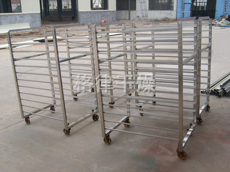 型号规格 | 每次干燥量(kg) | 风机功率(kw) | 耗用蒸气(kg/h) | 烘车(set) | 烘盘(只) | 宽×深×高(mm) | 上下温度(℃) |