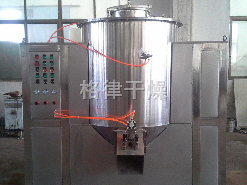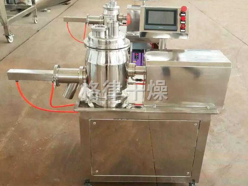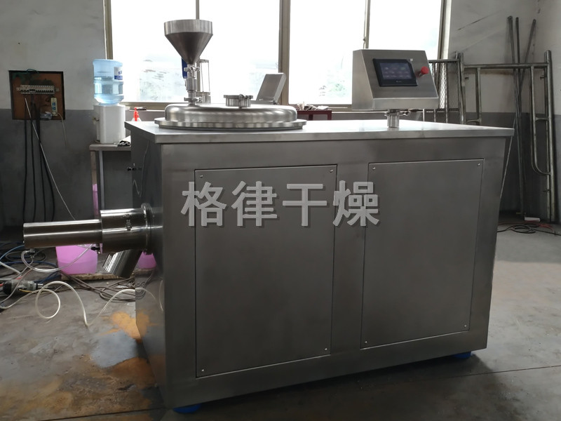粉体物料与粘合剂在圆筒形容器中由底部混合浆充分混合成湿润软材,然后由侧置的高速粉碎桨切割成均匀的湿颗粒。