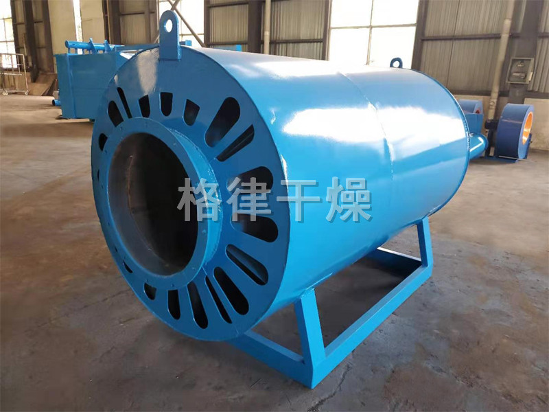 燃料通过燃烧器燃烧,产生高温燃气。并借助具有强化换热措施的热风炉将高温燃气的热量传导给被加热的空气,高温燃气经热量散发后温度降低至250℃后排到大气中。需加热的空气通过选配的鼓风机强送入热风炉,吸热后温度升至额定值从热风出口处送出,当热风温度达到额定温度上限时,燃烧器会自动停止燃烧或自动转为小火焰燃烧,当热风温度降低到额定下限温度时,燃烧器又会重新点燃运行或转为大火燃烧,升温的速度可以调节进风阀的开度来实现。
